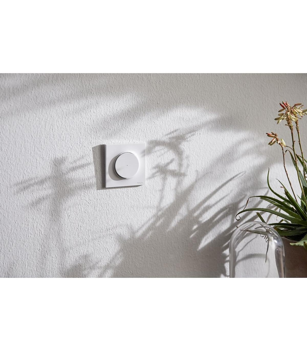 - Avec l'éclairage connecté Wiser, une simple pression du doigt sur ce bouton poussoir permet d'éteindre ou de rallumer toutes les lumières de la maison.