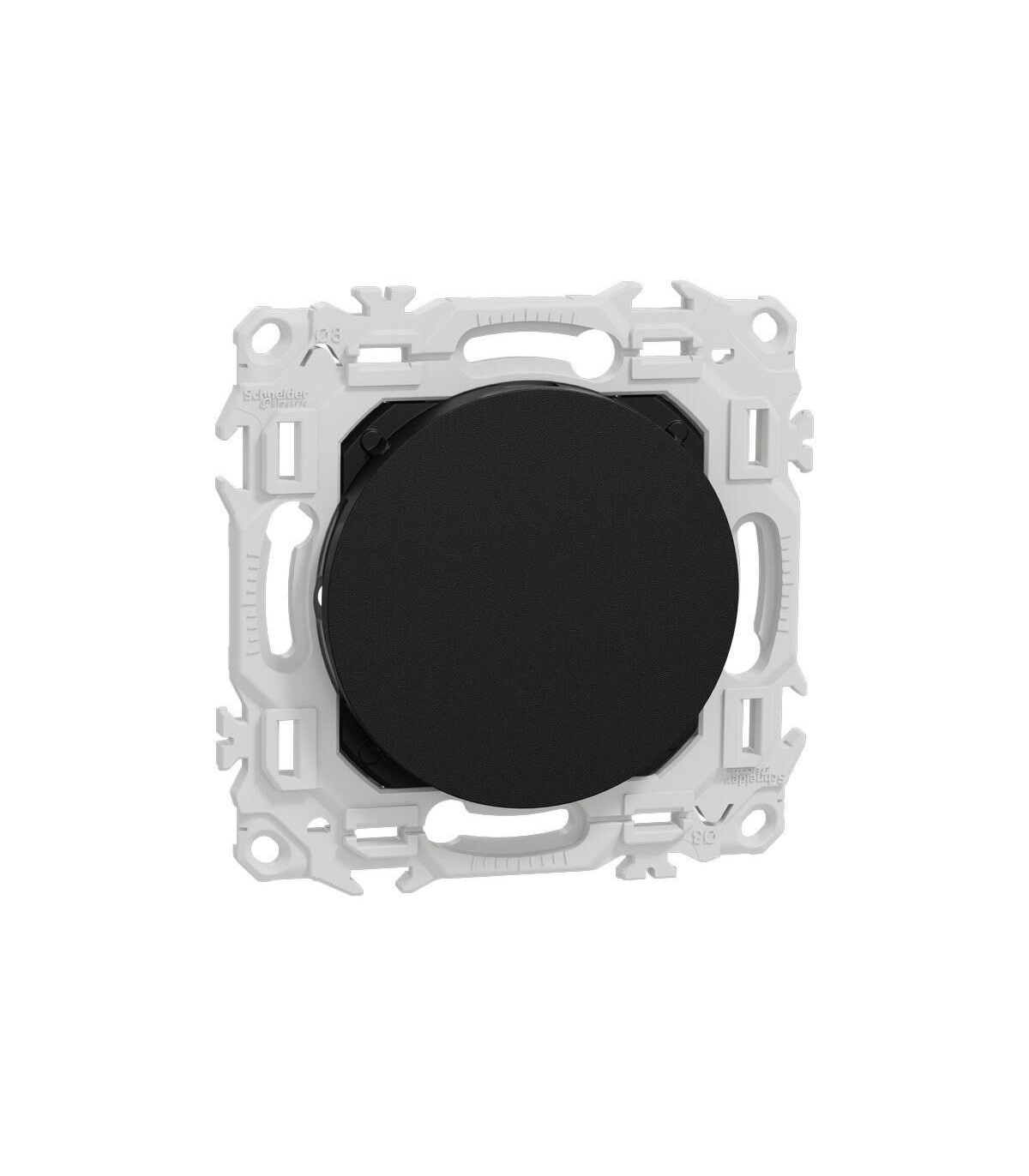 Obturateur Odace 2025 Schneider Noir RAL9005 mat. Perçage possible de l'enjoliveur pour sortie de câble