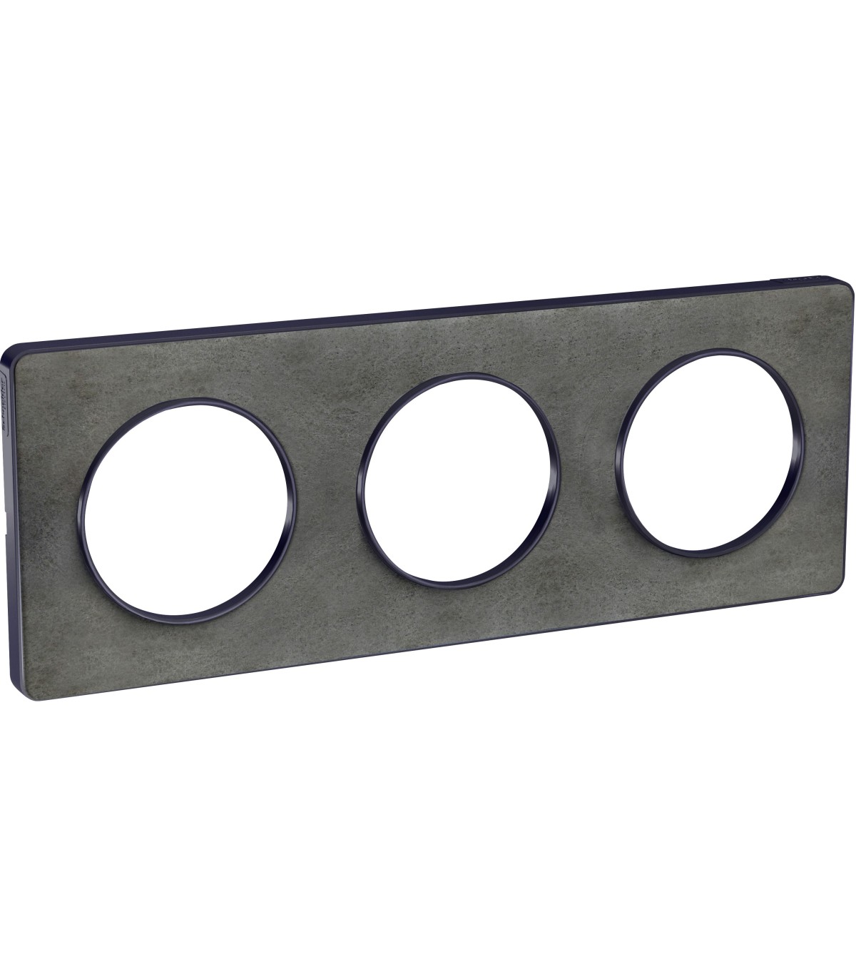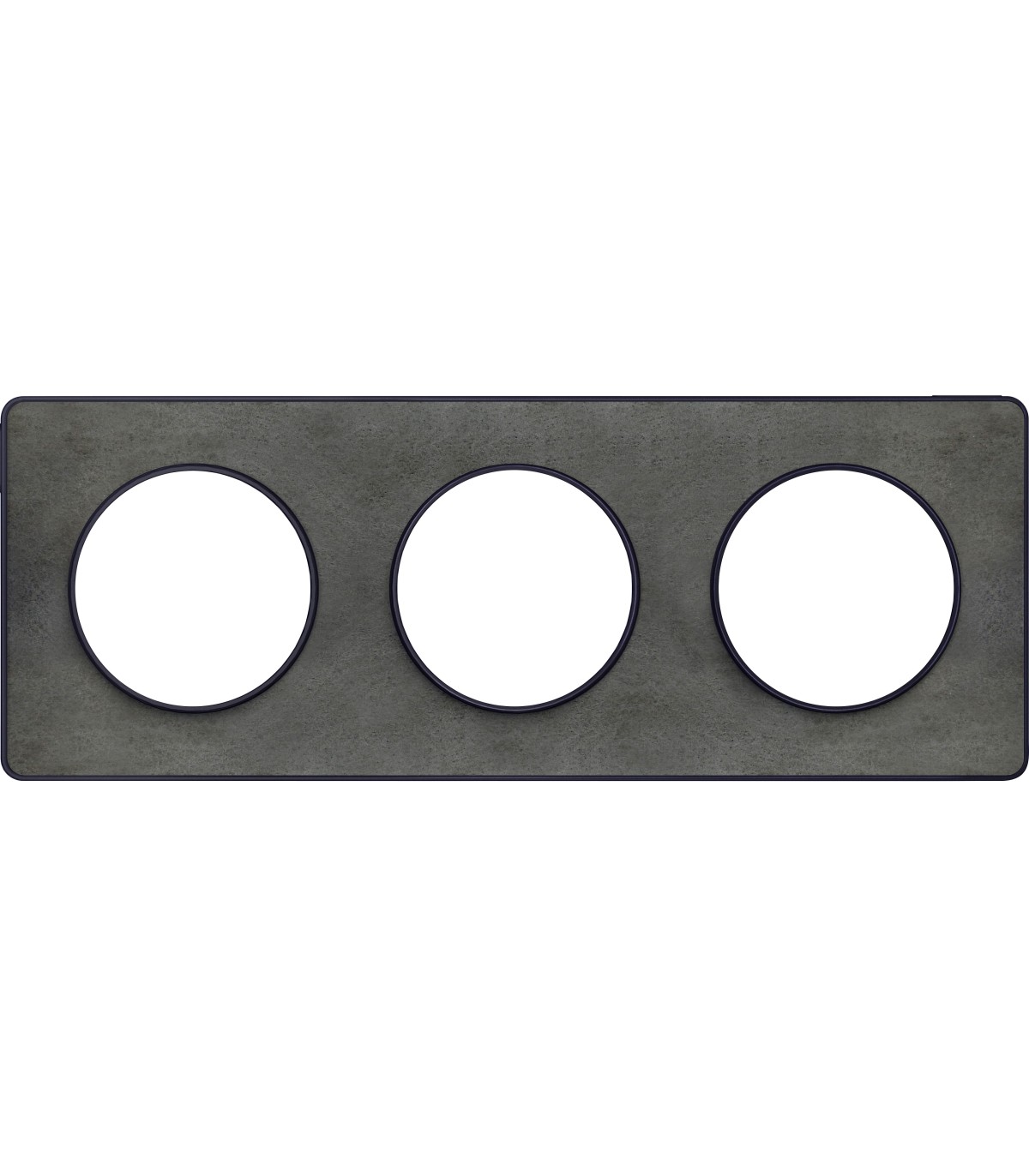 Plaque Odace Touch Schneider 3 postes entraxe 71mm, couleur ardoise avec liseré anthracite. Pose horizontale ou verticale.
