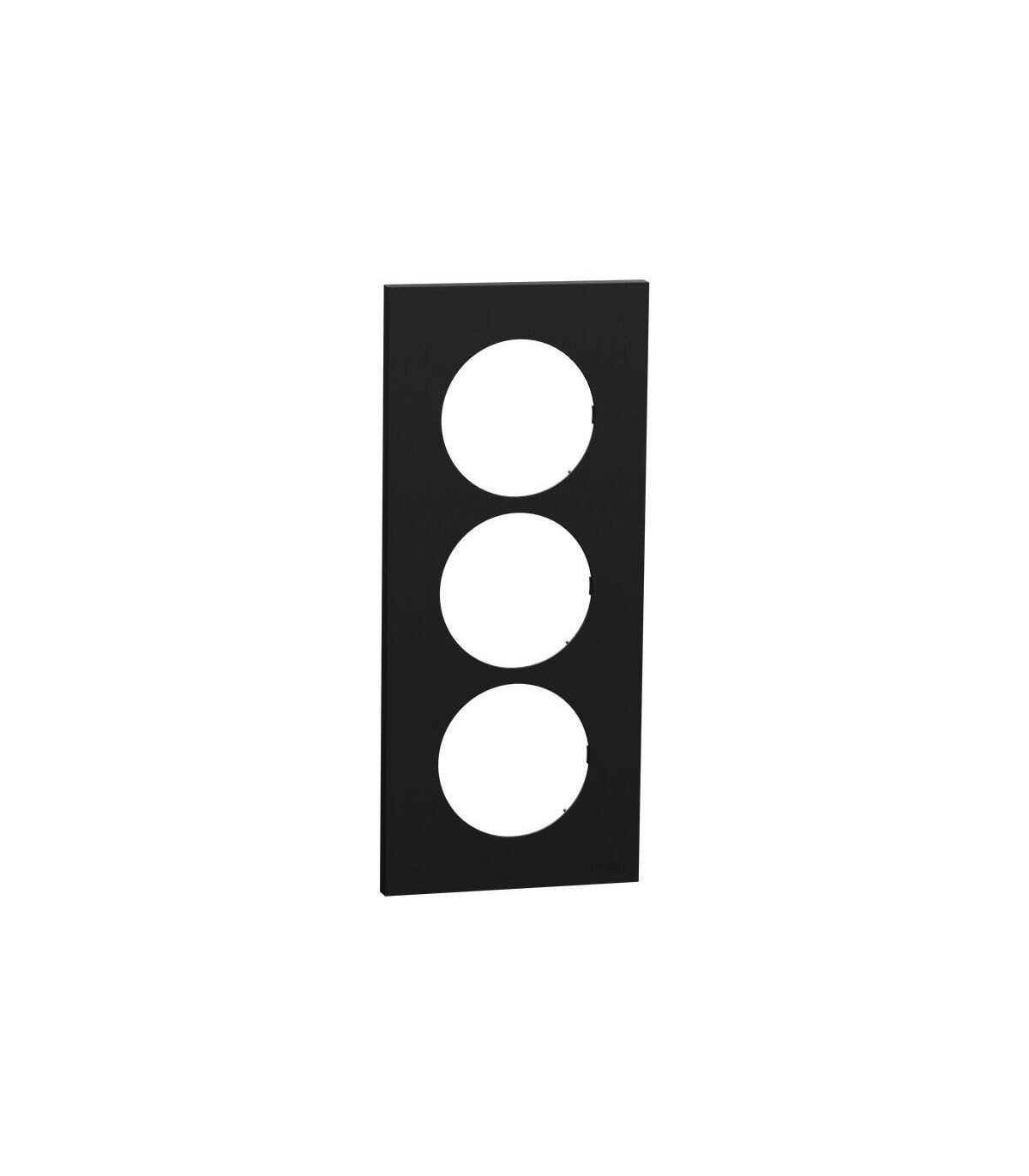 Plaque de finition Odace 2025 Schneider 3 Postes vertical Noir onyx mat (RAL9005) entraxe spécifique 57 mm.