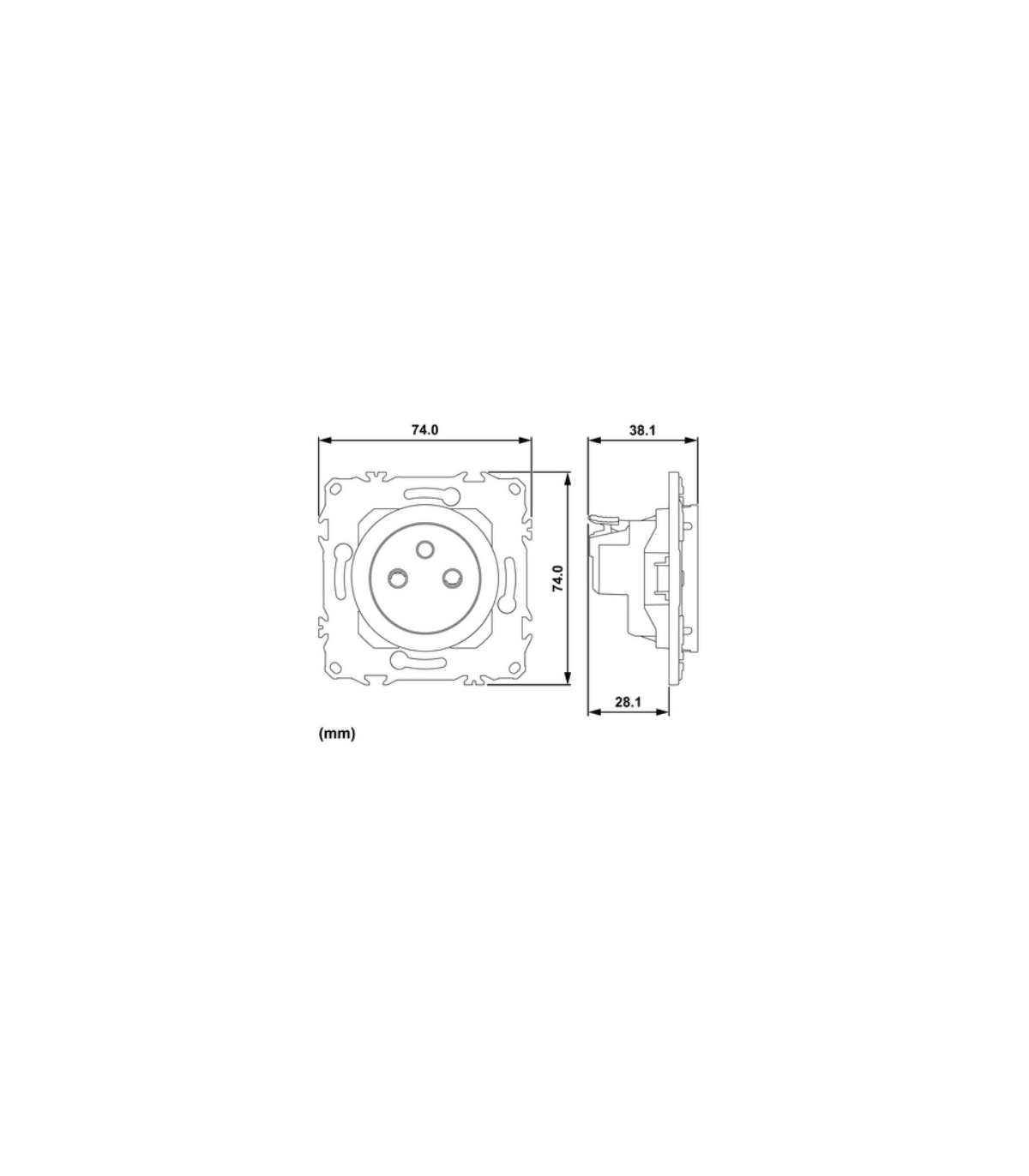 Dimensions (mm): H 73.9 X L 73.9 X P 37.6 / Profondeur d'encastrement : 27.5mm