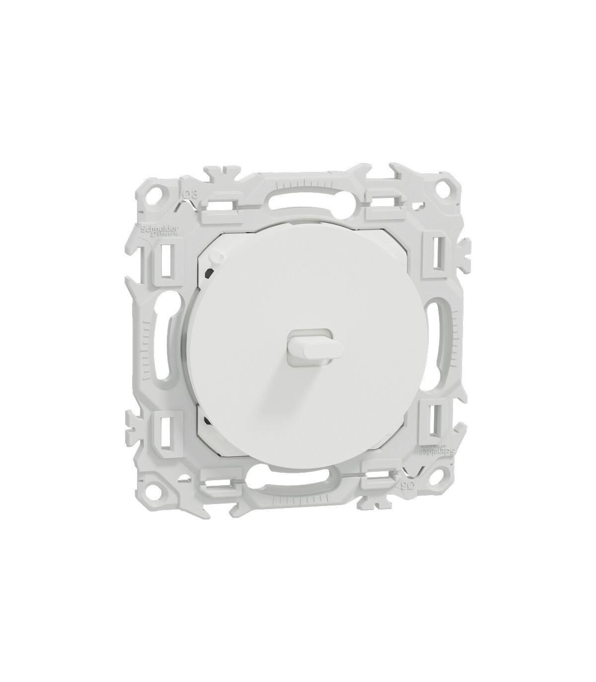 Interrupteur - Va et Vient ou Poussoir ergonomie à levier Gamme Odace 2025 multifonctionnel- 10AX 250V CA 50 Hz avec support de fixation intégré, enjoliveur Blanc RAL9003 mat et cache peinture.